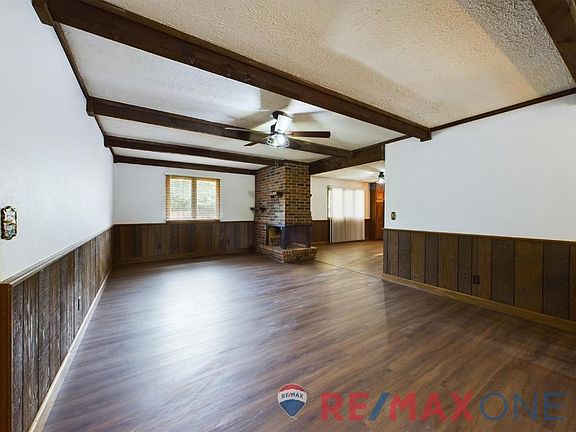 Welcome to your dream home! This 5-bedroom, 2-bathroom updated house is sure to fit all of needs. As you walk in the door, you're greeted by wooden beams throughout that give a touch of rustic charm. The main floor offers extra living space and a Jack & Jill bathroom for convenience. Enjoy cozy winter nights next to the wood burning fireplace while taking in views of the large backyard with its covered patio - perfect for entertaining guests or enjoying some fresh air. Plus, there's even a safe room for added security and peace of mind! Don't waitthis beautiful home won't last long!