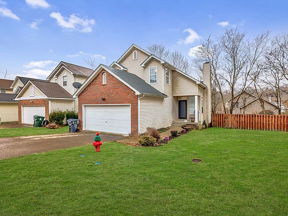 Adorable 3 bedroom 2 bathroom parietal brick home in excellent condition. Cozy living room includes a wood-burning fireplace and soaring ceilings. The kitchen features stainless steel appliances, a serving window, and a dining space. A full laundry room with access to the 2-car garage is the perfect drop zone. The master bedroom is located on the main level and includes an en-suite bathroom and walk-in closet. Upstairs you will find newly cleaned carpets throughout, 2 spacious bedrooms, and a flex space. Enjoy your outdoor space with a wood deck overlooking a fully fenced-in yard. This home offers everything you need including a ring security system. Enjoy living just 8 minutes from downtown Goodlettsville with tons of charming local shops and more!