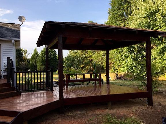 This home built in 1995 sits on 1.65 acre corner lot. It is an 1,862 square foot house with 3 bedrooms 3 baths and a bonus room/ office area and two master bedrooms. Master bath has large jacuzzi tub with tile surround, and a tiled shower. Large Master bedroom has a spacious walk- in closet. Living room and kitchen have vaulted ceilings. Kitchen has been newly remodeled with granite countertops, beautiful backsplash and a large peninsula. Home has COREtec waterproof hardwoods. Great school district with Larne Elementary across the street. Covered back porch area is a must see, and great for entertaining. Kids will love the two story playhouse that has ceiling fan and air conditioning. Call Mike at 704-718-6580 for more info. This home is in an area that is eligible for USDA loan financing.