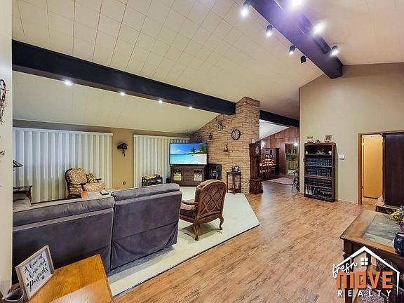 This sprawling ranch home boasts over 3,200 sf on the main level and an additional 672 sf in the basement. With 3 bedrooms and 3 bathrooms, this home offers a very spacious and versatile layout perfect for entertaining. Nestled on a large corner lot, this home is close to all the amenities one could need. The interior features two living spaces allowing for individual functionality. Adding a touch of coziness are three fireplaces strategically placed for warmth and ambiance. The kitchen is a culinary haven with quartz countertops, ample cabinet space, and a butler's pantry complete with an additional refrigerator. Step outside onto the large covered deck perfect for get togethers. A unique two-story storage building in the back provides an abundance of space for all your storage needs, while adding to the charm of the property. Call to schedule your tour today!