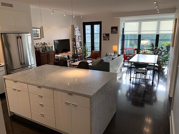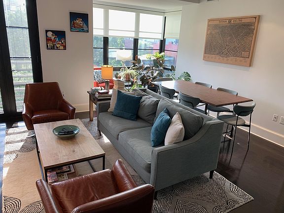 This luxury condominium unit is a two-bedroom, two-full bath apartment in a luxury 10-floor building at 11th and M St NW. The unit has Carrara marble countertops, high-end Electrolux appliances, white oak hardwood floors, and an open floor plan. It gets beautiful Western light and has floor-to-ceiling bay windows--perfect for plants! It also has two Juliet balconies. The building was completed in 2017 and was designed by Washington, DC architect Darryl Carter. The building has many amenities including concierge service, a mail/package room, elevators, a library that can be rented for events, a dog-washing station in the garage, an outdoor terrace on the ground level, and a huge rooftop terrace with 360-degree views of the city and built-in grills and a fireplace. This condominium sits at the intersection of the vibrant neighborhoods of Logan Circle and Shaw, and is walking distance from multiple Metro stops, numerous award-winning restaurants, Blagden Alley, and the 14th Street and U Street corridors. Owner pays for water and gas; renter covers electricity and cable/internet. The building is equipped for Verizon FIOS service.