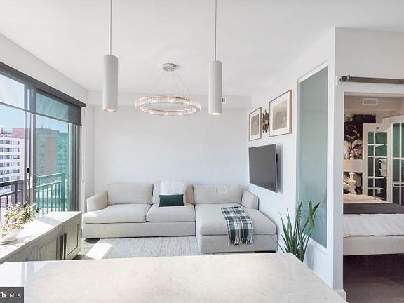 Situated at a unique convergence of downtown neighborhoods, where Logan Circle, Shaw's Historic District, Mt Vernon Sq., and Metro Center meet, is a convenient 1 bedroom 7th floor unit with abundant natural light, a flexible layout, and city views. Modern floorplan has open kitchen with movable kitchen island, floor to ceiling windows, hardwood floors, and in-unit full-size washer dryer. Bedroom with large closet is privately set off from living space by stylish barn door and comfortably fits a queen bed and office desk corner. The unit has been customized with added extras. This practically new luxury boutique building delivered in 2017 thinks outside the box by offering thoughtfully designed spaces, as well as living space beyond the actual unit with a captivating rooftop outfitted with lounge seating, grills, and DC views galore, as well as an elegant library and gathering room that expands to an outdoor lounge space, not to mention the perks of a 6-day a week concierge. Before you know it, the city will be fully back in business, fueling the excitement of the arts and entertainment scene where these central DC neighborhoods meet. Neighboring 4 metro stations, Michelin-star dining, and DC landmarks, this is a place you can choose to invest in. VIDEO TOUR: