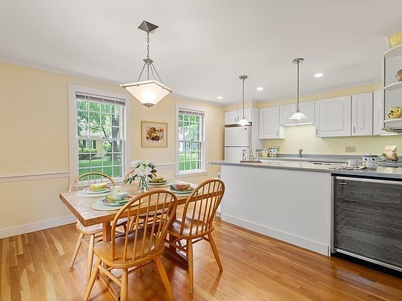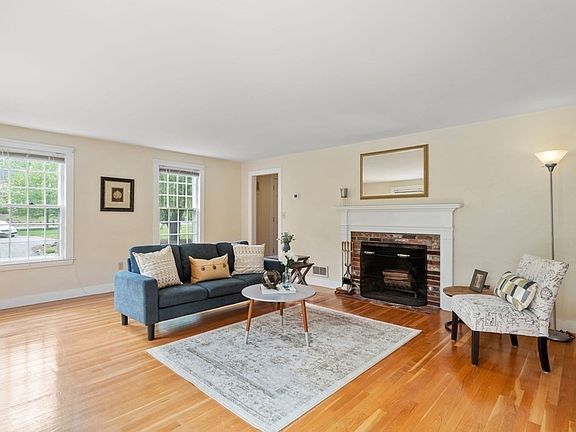 Rare opportunity to own a highly desirable and seldom available East Village Square townhouse. This unit has the look and feel, both inside and outside, of a Center Entrance Colonial. Ideal location with steps to the Minuteman Bikeway and 183 acre conservation land and just minutes away from Wilson Farm. One of only 11 homes in this sprawling and tranquil complex that is surrounded by well-maintained gardens with brick pathways up to each entry. Step into the foyer with charming staircase that welcomes you to the stately living room with fireplace and sliders to a generous private deck. An open concept dining room to kitchen with peninsula, and half bath complete the first floor. The second floor offers a large primary bedroom with 2 closets (one walk in) and full bath, an additional guest bedroom and half bath complete this floor. The lower level offers a large family room, half bath , laundry and access to the two car garage. Additional features include: AC, hardwood flooring.