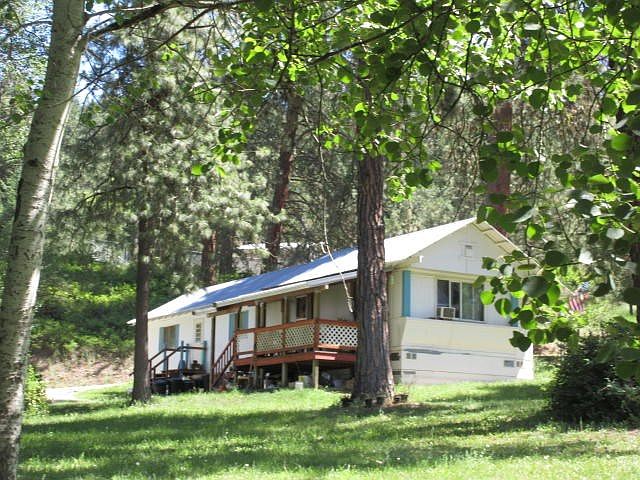 Mobile home sits on 4.58 acres of park like setting with a very nice shop/garage. Plus a shed. The home has an nice deck facing the water with a dock on the water. There is a tip out to make more room. Well taken care of for its built year.