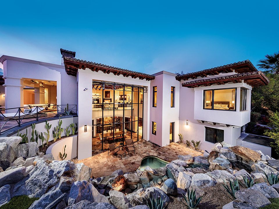 This fantastic home has recently been re-imagined with furniture, fixtures and landscaping. Terrific open floor plan with outdoor living, infinity edge pool and your private putting green. Unobstructed south exposure with views of the Canyons #2 fairway and the Santa Rosa Mountain range beyond. This home lives well for a couple, with master suite, office, one guest suite, great room and kitchen all on the main level. Lower level features game room with full bath, wine grotto with dining table and theater with powder bathroom. Separate entry guest house features two suites with a shared living room and kitchenette. Private dog park accessed from inside office or guest house. Professional chef's kitchen plus catering kitchen, as well as outdoor BBQ center. Additional amenities include a wet bar, a 'locker room' for storage right off garage and guest powder baths on each level. Offered furnished, excluding artwork.