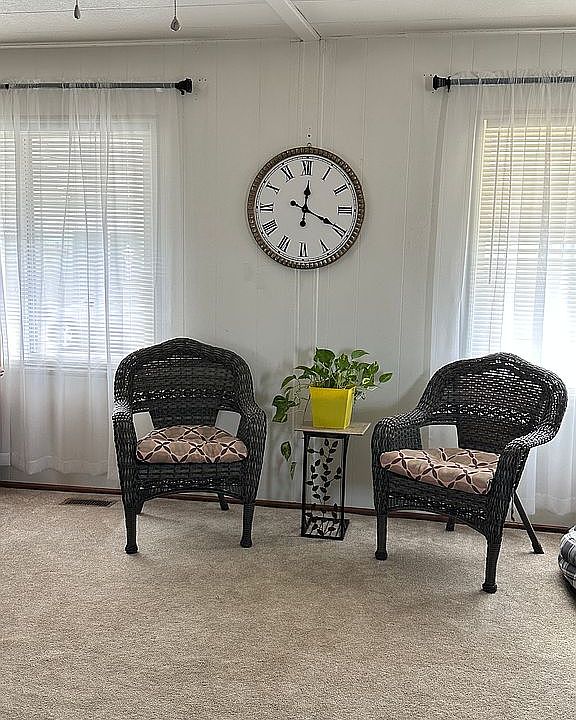 This home is offered in Whispering Pines Senior Living, 55 Plus, Park. Figuring 1,248 square feet with 3 bedroom and 2 full bathrooms. Low maintenance, fully fenced yard, and a manageable vegetable or flower raised bed garden to relax and enjoy. Covered off street parking is available for three vehicle and an overflow spot for a fourth. Recently updated furnace and a/c, fully serviced this year. Extra storage? Two wooden Storage sheds Lot Rent is $595 per month and includes: Water, trash, and septic. Community Pool! Offered at $68,000 Call today to set up your appointment to view