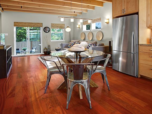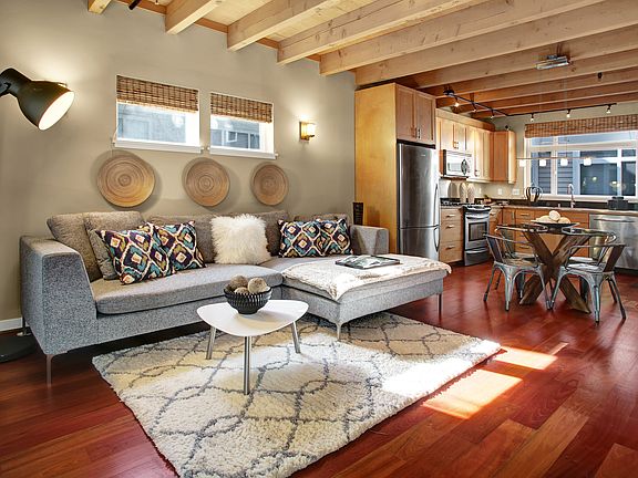 Enjoy this contemporary townhome on the corner of Phinney Ridge, Fremont, and Wallingford neighborhoods. Exposed wood beams compliment a spacious and open floor plan - perfect for entertaining! Gleaming Brazilian cherry hardwood floors, floating open stairways, and modern kitchen finishes. Three levels of functional spaces including an open office on the second floor and vaulted ceilings in the master suite. Cutting edge smart home features such as RGB and dimmable lighting, PIN and app-controlled door locks, and smart speakers on every floor. Beautifully remodeled backyard patio is great for entertaining in the summer months. Over-sized garage with additional storage. Near Green Lake, Woodland Park, and the Zoo. Tenant responsible for all utilities.