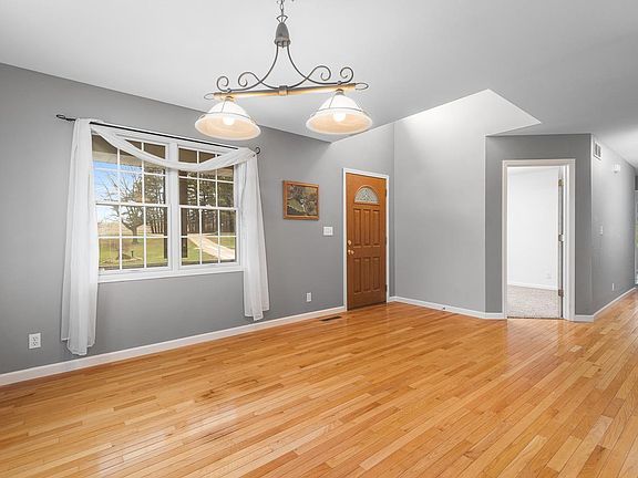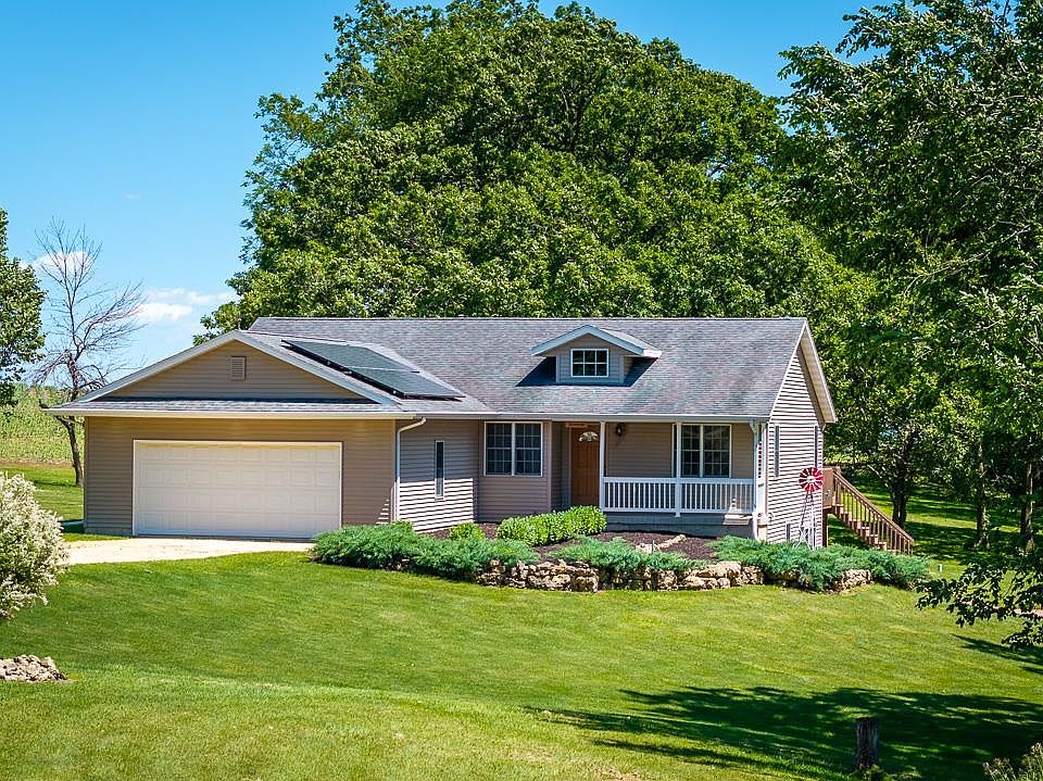 This charming rural residence in the Dakota School District features 3 bedrooms, 3 full bathrooms, and a 2-car garage along with a peaceful 2 acre yard. As you step inside, the warmth of oak hardwood floors along with all of the natural light welcomes you into the main living areas, creating a continuous flow throughout the open-concept design. The kitchen is fully equipped with hickory cabinets, a pantry, and stainless steel appliances. The open layout encourages connection, allowing you to effortlessly transition from cooking to entertaining. Rounding out the rest of the main floor you will find 3 bedrooms, 2 with new carpet, installed Dec 2023. The primary bedroom has an ensuite and there is also the convenience of a first-floor laundry room. Descending to the lower level, the finished walkout basement expands the living space and offers versatile options for entertainment and recreation. A spacious rec room provides the ideal setting for gatherings or game nights. An additional bonus room in the basement can be tailored to suit your specific needs – whether it be a home office, gym, or hobby space. Abundant storage space ensures that everything has its place, keeping the home organized and clutter-free. Stepping outside, The large deck is the perfect spot for outdoor dining, morning coffee, or simply unwinding after a long day. With steps leading down to the yard, it seamlessly connects the indoor and outdoor living spaces. A stamped concrete patio with a fire pit adds a touch of charm to the outdoor space to enjoy the 2 acre yard with mature trees. What sets this property apart is its location, in the Dakota School District, marked by its rural setting which offers a sense of peacefulness and privacy and a stunning view of the night sky. Solar panels on the home are leased and available for transfer to the new owner.