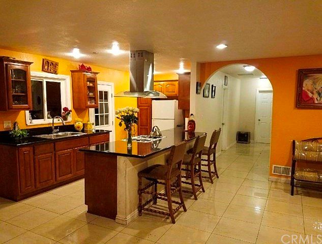 Completely remodeled lovely 3 bedroom 2 bath home with bonus room for extra touch. Spacious Kitchen with black granite counters, new wood cabinets, island with bar that seats 5 chairs, custom tile flooring and open dining area. Huge living room with fireplace and sliding door leading to a beautifully hardscaped patio. Recessed lighting throughout. Master bedroom with full bath and walk in closet. Full bath in hall completely remodeled with custom tile. Two more spacious bedrooms with large windows for natural light. RV access on side.