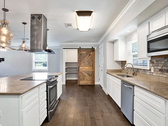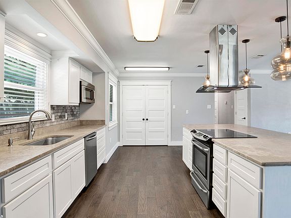 Welcome to this adorable ranch style home situated on a corner lot located in the heart of the historic downtown Foley. This 3 bedroom 2 bath home offers an open layout that creates the perfect scenario for you to cook while still socializing with your family/friends in the living room. Watch your kids play in the fully fenced backyard through the windows in the kitchen. Inside you will find travertine stone countertops, gorgeous back splash and stand alone free hanging stainless steel range, custom wood barn style door on pantry. The exterior of the home is freshly painted that gives a coastal modern feel. Book your showing today!