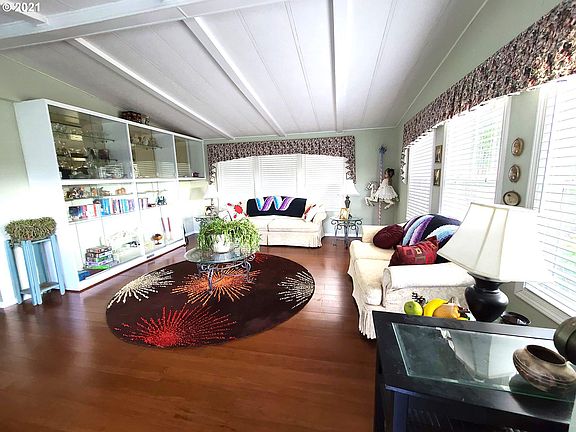 Great location with privacy and a beautifully landscaped backyard! 2 bedroom and 2 bathrooms in this updated double wide. Large formal living room, dining room and kitchen with an island. Family room has French doors leading to the lushly landscaped backyard with a pond and plenty of rose bushes. 2 storage sheds and a small greenhouse! Don't miss out on this one!