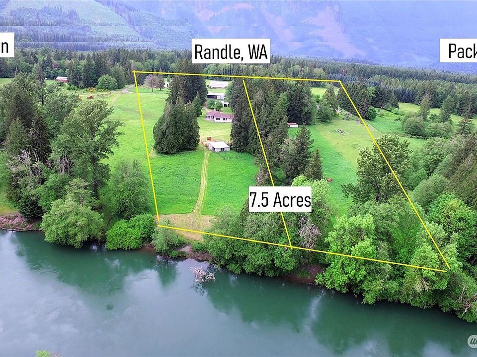 Experience the ultimate serene country living in SW Washington with this ONE-OF-A-KIND riverfront property in Randle, WA. Nestled along the Cowlitz River in East Lewis County, this 3,548 sqft custom home offers stunning views. Ideal for relaxation and livestock raising, it provides a daily escape from city life. Features include oversized windows, spacious country kitchen w/ walk-in pantry, lg. bedrooms, & two home offices! Sep. barns, a 30x64 ft 5-bay shop, det. Gar/att. Gar & carport offer ample storage & workspace. TWO parcels total approx 7.75 acres, fenced & cross-fenced. Amenities include RV hookups, wired for generator & more. Enjoy fishing, hiking, hunting, & golfing nearby, with skiing at WP Resort a short drive away. A-MUST-SEE!