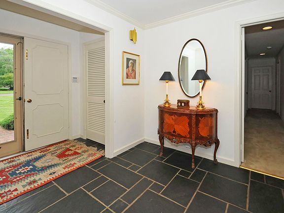 Exquisite all Brick Ranch nestled on a Beautiful 1.1 Level Lush Landscaped Acre Lot! Entering into the double door entry and into the elegant spacious foyer you will see the building quality immediately that this home has to offer. The Beautiful Living Room is bright & light with a large bay window and a charming built-in window seat to cozy up in and enjoy the views of the grounds and the marble surround Fireplace. The Family Room is a handsome room with a beamed ceiling, full brick wall Fireplace and wall of windows with French Doors that exit to a rear Patio. A Bar Cabinet is Built-in and is open between the Living Room & Family Room. Elegant Formal Dining Room with Chair Rail and Crown Molding as well as Exposed Parquet HW Floors (in many rooms). The large White Eat-in Kitchen w/tile backsplash, quarry tile floor, gas cooking and spacious eating area features a wall of windows w/sliders that opens to the deck-great for entertaining and BBQ's! Spacious Master Suite includes 2 Walk-in Closets, Dressing Room w/vanity & sink, Master Bath and sliders with access to the lovely Brick Patio. Two additional Bedrooms and an all tile Full Hall Bath complete this wonderful Ranch Home. There is an attached 2 car Garage that enters into the Mudroom/Laundry Rm and a huge unfinished basement. Brand new roof with Architectural Shingles just installed completes this wonderful custom home! One Year Home Warranty Included!!