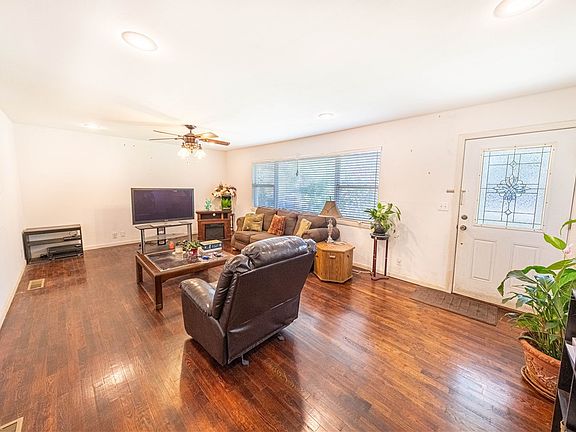 Centrally located close to it all, spacious living room with large window, beautiful wood floors in living room, spacious hall bath with combination tub/shower, master bedroom has a tiled wall shower, storage room next to kitchen, extra cabinet space, large back yard, newer roof, and brand new central heat and air.