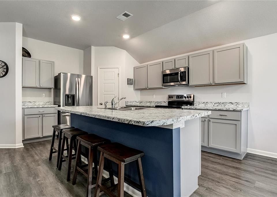 Enjoy easy one-level living in this spacious 3-bedroom, 2-bath ranch in a prime Paola location, just minutes from downtown, schools, and shopping. This nearly new, two-year-old home offers an open floor plan filled with natural light. The kitchen boasts a large island, abundant counter space, and a walk-in pantry—perfect for everyday living and entertaining. Retreat to the generous owner’s suite featuring a large walk-in closet and a bathroom with space for a future vanity or tub. Relax outdoors on the covered back porch and expanded patio while taking in peaceful views of the green space alive with wildlife.