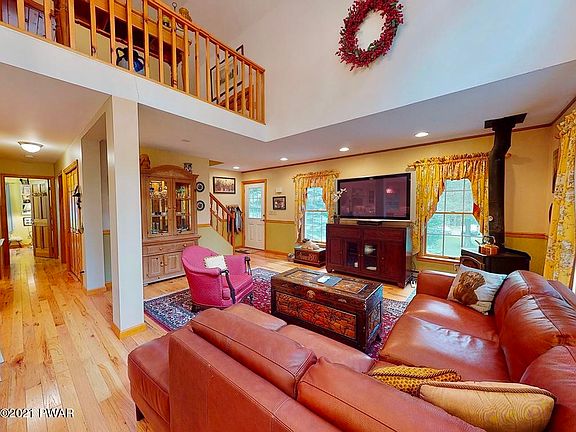 Wallenpaupack Lake Estates custom contemporary cape with unexpected vaulted ceilings and loft. Located on a culdesac, with double tiered entertainment decking complete with under the step lighting, grassy playspace and separate sun deck amongst the ferns...you'll be further delighted indoors. Dreamy kitchen with special cabinetry and millwork with a dining sized island, Bosch appliances including a double oven & electric stove top, plus a wine and beverage cooler. Climate controlled with split unit AC and free standing woodstove. Hardwood floors and six planel doors throughout all living spaces in this 3 BR, 2 BA light , bright and welcoming wonder. Enjoy the feeling... perhaps the one you have been waiting for has arrived on the market!