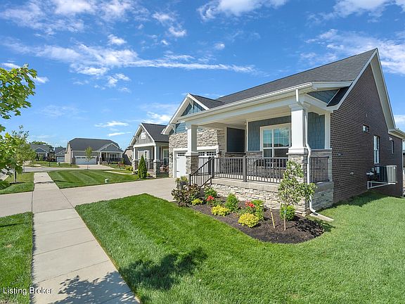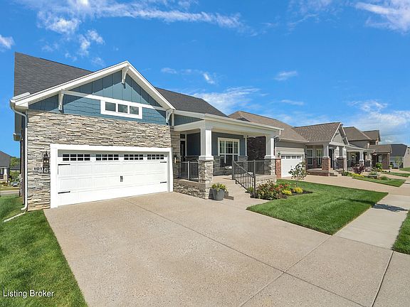 Back on the market, buyers house did not sell- A maintenance free lifestyle in the prestigious Signature Point community just off South English Station Road. This 2022 Elite built custom home open floor plan allows for seamless flow between the Gathering Room, Dining and Kitchen. This open central area is appointed with Pottery Barn custom draperies, high end lighting from both Pottery Barn and Brecher's Lighting, a gas fireplace and cooktop, and boasts a stunning custom glass tile backsplashThis popular Laurel floor plan features Luxury Vinyl Plank flooring throughout, two bedrooms, a Study that can be easily converted to a third bedroom, two full bathrooms with custom mirrors, a laundry room with a custom tiled utility sink/cabinet, an attached two-car garage and lots of storage spac recessed ceiling with a dazzling Brecher's light fixture, a walk-in closet, separate linen closet and a walk-in shower with a built-in bench.The super wide entry foyer has a triple tray recessed ceiling, custom Pottery Barn lighting and an oak tread stair leading to the basement.The elevated covered deck includes a ceiling fan and the lower-level patio space leads to an expansive back yard perfect for parties or pets. A large walk out basement has a 9.5' ceiling, two sets of large windows, and is pre-plumbed for future living space expansion.The garage door, thermostat, and oven can be monitored and controlled by mobile apps.Built-in USB phone/device chargers are available at the luxurious quartz topped kitchen island and custom tiled key drop space.The house is secured by a Blink camera system.The cabinet depth Whirlpool refrigerator and the 65" TV hung from a Mantle Mount with drop down feature are negotiable.The homes orientation sets the living spaces to the east for bright morning sunrises while offering sweeping views across the community.Signature Point is located next to Christian Academy of Louisville and 5 minutes from Beckley Creek Park. Signature Point, a socially active community, features a beautifully designed and appointed clubhouse to host large gatherings, features a large pool and hot tub, a weight &exercise room and a fenced in dog park.The Signature Point HOA fees cover grass cutting, lawn irrigation, lawn fertilization and weed control, and access to the clubhouse, pool and hot tub.