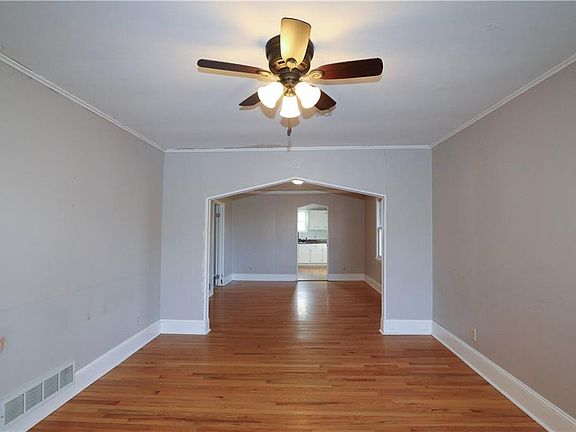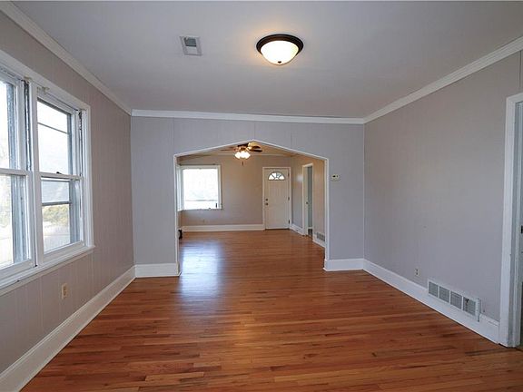 This charming 2-bedroom, 1-bath bungalow offers a cozy and inviting atmosphere with classic appeal. As you enter, you’re greeted by beautiful hardwood floors that flow seamlessly throughout the common area, creating a warm and welcoming ambiance. The spacious living room features large windows that fill the space with natural light, making it the perfect spot for relaxing or entertaining.