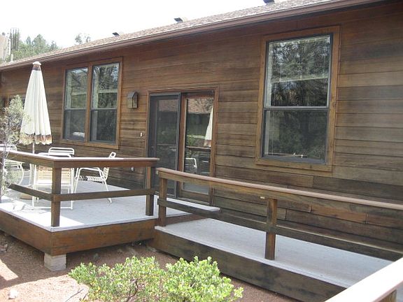 Big lot (46 ac.) & big view! Barrier free home with NO steps. Enjoy your relaxation time on the trex deck looking out on the Mogollon Rim. This composite-sided home is hidden in the trees on a quiet cul-de-sac near hospital. Inside is a great room with the cadillac of pellet stoves for energy efficient/radiant heat, built in cabinetry & bookshelves, ambient lighting, & wet bar. The kitchen includes granite counter tops, range, garbage disposal, fridge, new dishwasher & cork floor. LARGE storage room in garage. Home has a very bright & cheery interior.