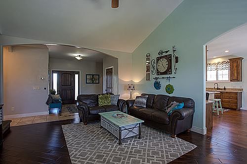 Enjoy this charming rambler nestled in the heart of Suncrest Meadow! Tastefully finished, elegant, clean, open layout, lofty ceilings, plantation shutters, spacious great room with vaulted ceiling, cozy fireplace, awesome kitchen with a huge pantry, custom cabinets, granite countertops, master suite with vaulted ceiling, walk-in closet, jetted tub, mud and laundry rooms, ample storage and closet space throughout, and an upper level bonus room. The lower level is fully finished and features an entertainment/play room, a full second kitchen, separate laundry hookups, an open office area, an additional fireplace, and an extra wide walk-out entry to the RV parking area. You will absolutely love the beautiful yard which features a delightful balance of low-maintenance landscaping, open grass, deck space, stamped concrete patio, and mountain views. Over-sized garage with a 3rd bay. Fantastic location and wonderful neighborhood with convenient access to local schools and shopping. Buyer to verify all information. Call James Ellis today at 801-541-4663 to schedule your personal tour!