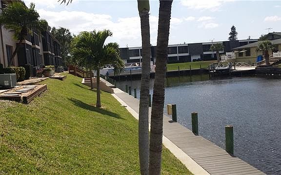 Gorgeous First Floor Gulf Access Condo with a Wonderful View of the 100 Ft Wide Canal. Only 1 Bridge to the River. 2 bedroom, 2 bath, Screened Lanai, Great Room, Dining, Guest Suite and the Kitchen has newer appliances. Appliances include Washer, Dryer, Dishwasher, Refrigerator, Microwave Oven, and Stove. Carport with Extra Storage. Plenty of parking for guests. Community Pool and Dock. No Pet and No Truck Allowed.