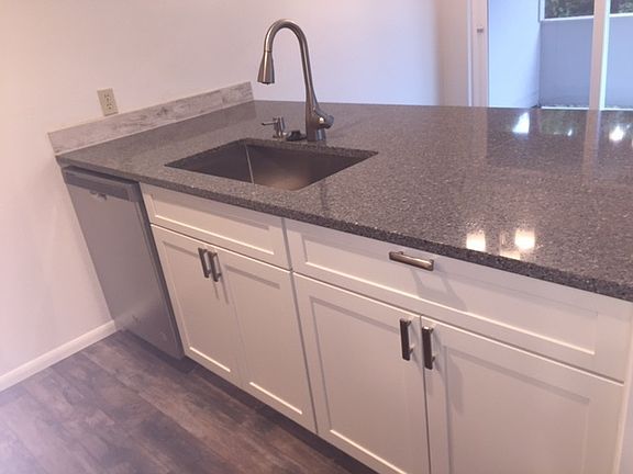 Recently remodeled lower unit apartment. Kitchen/Bath has Quartz counter tops. Kitchen with SS sink and soap dispenser. SS Appliances include Refrigerator, Stove/Oven, Dishwasher. Plentiful Contemporary White Self Closing Cabinets/Drawers. Spacious feeling from kitchen to dining room. Dining room has cabinets underneath countertop for storage.