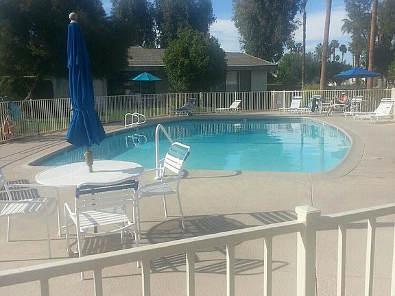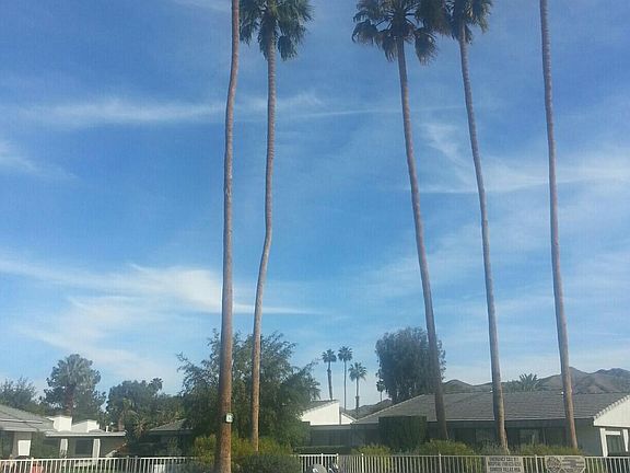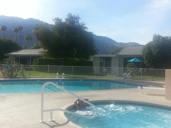 SPACIOUS CONDOMINIUM IN SOUTH PALM SPRINGS This 1400 sq. ft. single story 2 bedroom 2 bath condominium unit is within Sunrise Villas which is located in the desirable southern section of Palm Springs. The unit is only 1.5 miles from downtown Palm Springs; 2 miles from the Palm Springs International Airport; and adjacent to the Mesquite Golf and Country Club and Deep Well Estates. The condominium complex is a short walk to Smoke Tree Shopping Center and near all that Palm Springs has to offer, including restaurants, fashionable shopping, casinos, hotels, grocery stores, golf courses, spas, design tours, horseback riding, hiking and more. Sunrise Villas is a low density and quiet community with 3 tennis courts, 8 swimming pools, 3 jacuzzis, and surrounded by spacious manicured green lawns, lush landscaping, palm trees, orange trees, grapefruit trees and lemon trees which are all maintained by a full time staff. The condo is located in the interior of the complex away from street noise and traffic. This bright and airy oasis with large bedrooms on opposite sides of the living room create spacious and private living. No neighbors upstairs and lush green grass everywhere you look. The kitchen is equipped with a refrigerator, stove, dishwasher and garbage disposal. The kitchen opens to a large dining room. The huge living room has a vaulted ceiling and opens to the rear patio, spacious lawn, pool and Jacuzzi. The rear patio is covered by a large awning and has incredible mountain views. The spacious master bedroom has its own private access to the rear patio. The master bathroom has two sinks, large mirrors, a walk-in shower and an oversized walk in-closet. The nicely separated guest bedroom is very spacious and private. The guest bathroom is centrally located and includes a bath tub and shower. The condo provides plenty of closet and storage space. The condo has central air-conditioning and it includes a private laundry room with full size washer and dryer. There is attached garage parking for one vehicle with remote control access and ample street parking. various