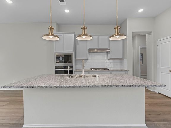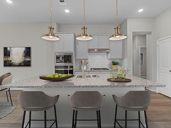 This thoughtfully designed 4-bedroom, 2-bath home combines modern curb appeal with a functional, open layout. The main living areas feature beautiful, durable flooring that flows through the family room, casual dining space, and kitchen. The kitchen offers both style and practicality, with 42" cabinets, natural stone countertops, and built-in appliances. The spacious primary suite includes a large walk-in shower and an oversized walk-in closet for ample storage. A covered rear patio extends your living space outdoors—ideal for relaxing or entertaining. Certified Environments for Living, this home is built with top-tier energy-efficient features for year-round comfort and savings. Schedule a tour today and see what makes this home stand out.