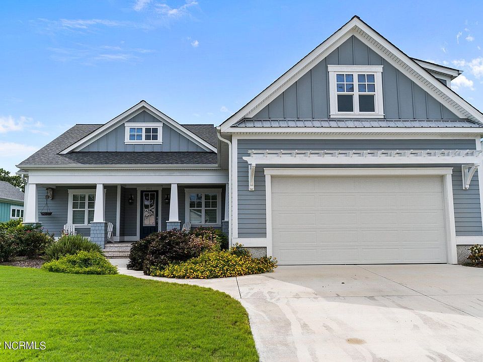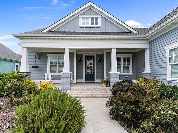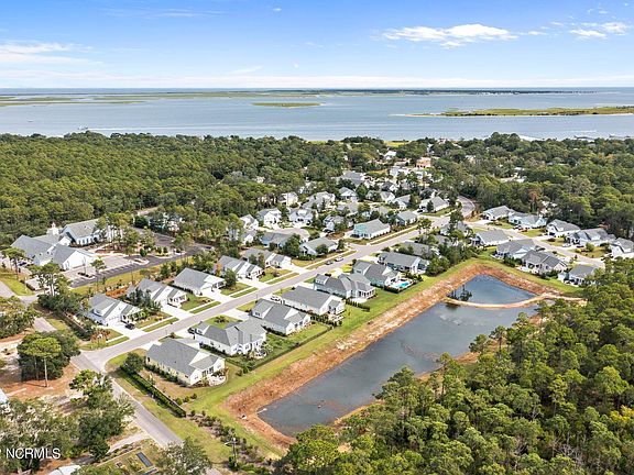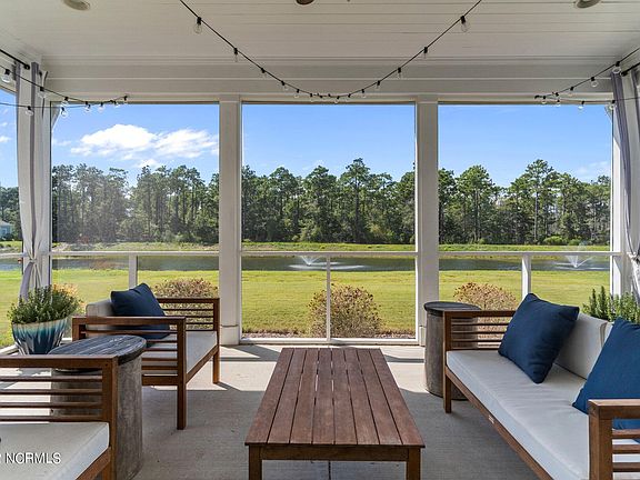 This luxury home is just a walk to the Southport waterfront and is located in the popular neighborhood The Hammocks. The front porch of this beautifully cared for home welcomes you to sit and enjoy the day. Filled with lots of ''extras'' and upgrades, the home's open concept plan provides a beautiful space for the gourmet kitchen and spacious living and dining areas. The living area and kitchen include an additional eight feet of space that was added to the original floor plan. The kitchen features a custom island perfect for entertaining with seating for four, upgraded black chrome appliances with blue tooth control options, and a farmhouse sink of crushed granite. The living area offers an oversized seating area, custom coffered ceilings, a gas burning fireplace with engineered logs, and custom built-in cabinets and storage. This area opens to an oversized screened-in porch (with a ceiling fan) through four 16-foot panel sliders of floor to ceiling windows. The oversized porch overlooks the community pond, fountains, and picturesque pine trees to the west. The downstairs primary bedroom has wood flooring, a large ensuite bath with a beautifully tiled walk-in shower, and double sinks and vanities. Two guest bedrooms with large closets and a guest bath are also on the main level, in addition to several storage closets for all of your needs. The house also includes a 375 square foot flex space or 4th bedroom upstairs with a half bath and room to add a shower/bathtub. The home's soft close drawers and cabinets throughout are an additional upgrade. Outside, the patio off the screened porch includes added space for evenings spent grilling. The home includes an oversized driveway leading to the double garage that houses a utility sink and has extra room for a workshop space. The heating system is natural gas and the water heater is Rinnai tankless. An irrigation system was installed on a separate meter for cost savings. You want to see this special home!
