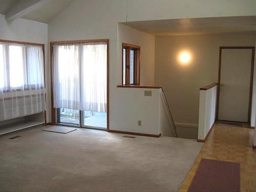 Contemporary style home in great location! This three bedroom home has many great features throughout. Vaulted ceilings accentuate the open living space of the living room with fireplace and walkout to patio. Skylights allow natural light in two bedrooms with each of the three rooms also having a vaulted ceiling feature. Spacious attached garage and large partially finished lower level add great possibilities. Call today for a tour!