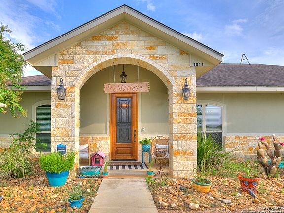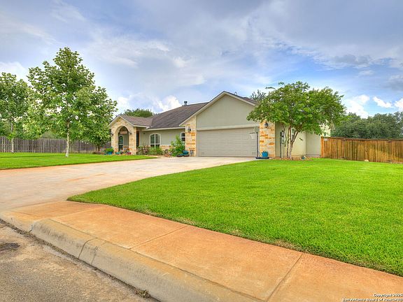 Welcome to this charming, well-maintained 3-bedroom, 2-bath home located in Pleasanton, Texas. This custom-built home is approximately 10 years old and was designed for comfort and style. The heart of this home is its massive open-concept living space, featuring a large kitchen, dining, and living area-perfect for entertaining or family gatherings. Enjoy a cozy wood-burning fireplace and the elegance of stained concrete floors throughout. Other Key Features: Custom cabinetry throughout the home Granite countertops in the kitchen and all bathrooms Expansive counter space with a large L-shaped island in the kitchen Pantry, dishwasher, and ample storage Primary Suite Features: Oversized primary bedroom with a huge walk-in closet Luxurious master bath with jacuzzi tub, separate shower, and dual vanities Additional Features: Two spacious secondary bedrooms, each with walk-in closets Large laundry room with linen closet Ceiling fans throughout Mini-split A/C in 3rd bedroom Two-car garage Outdoor Area: Step into a massive, fully fenced backyard, perfect for gatherings or relaxation. A beautiful mature live oak tree provides shade and character, while the landscaped yard offers an inviting space for grilling, outdoor games, or peaceful evenings. This home combines functionality with elegance, offering plenty of space inside and out for comfortable living. Set up your showing today.