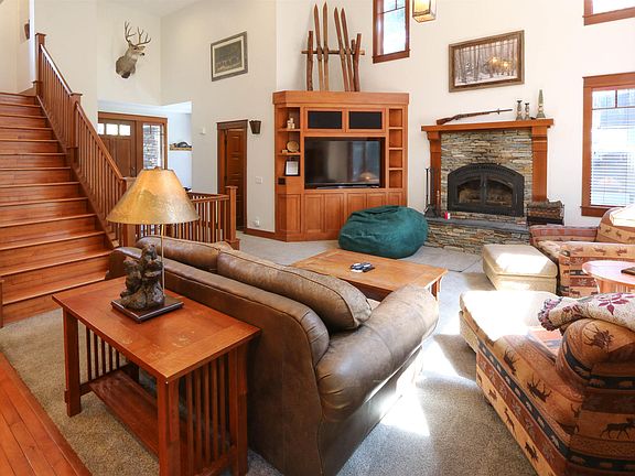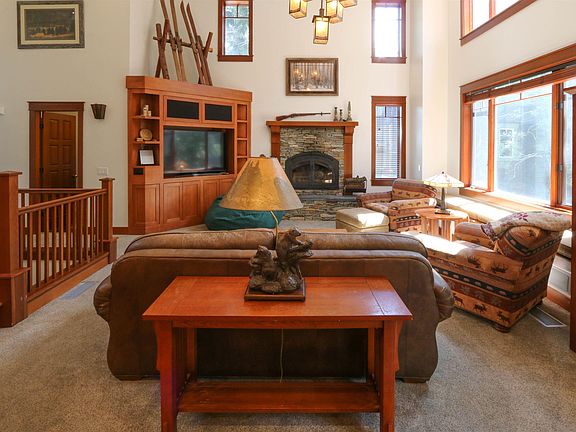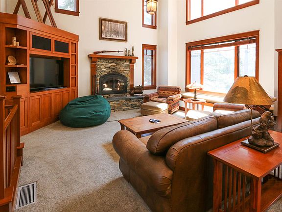 Spectacularly located 4 bedroom + den / 3.5 bath townhome overlooking the 17th fairway of the Sierra Star golf course. This lives like a luxury home with the convenience of HOA management. The property features timeless Craftsman design, a large great room with high open ceilings and windows, three levels of open wood staircase, a wood burning fireplace and upper and lower decks spilling out to the natural forest open space fronting the golf course. Custom built-in entertainment center in living room. The primary suite is on the top floor and the bath features a large soaking tub. The lower level den splits three bedrooms including an ensuite. The den accesses the lower deck where there is a private spa/hot tub. Wood encasement windows throughout. Forced air heating and gas cooking. Extra storage in garage and laundry room/mud room. Substantial owner lock-off storage under lower stairs. Large formal entry with covered porch. Major remodeling and upgrading in 2016 including spa replacement. Brand new roof. Low density modern project. This location is close to the Meridian Blvd. shuttle stop for a quick trip up to Eagle Express. The Sierra Star clubhouse is across the driveway. Great winter and summer location in a beautiful forested/golf course setting and location. Sold furnished. Check out the video tour.