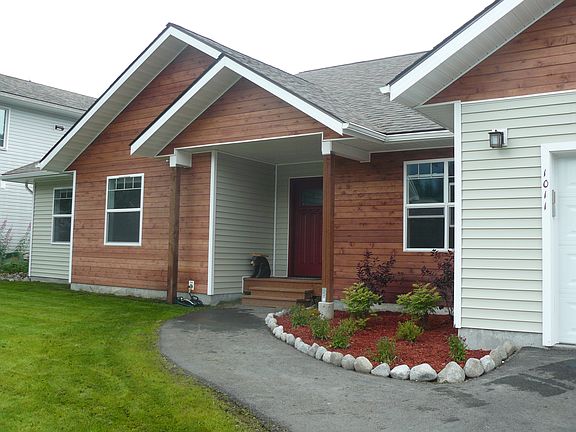 Come live in Montana Creek, Juneau's playground. Built in 2014 this three bedroom, 1853 sq ft home features an open floor plan, a gourmet kitchen designed for entertaining with breakfast bar, stainless steal appliances, solid surface counters,and tiled flooring . Upgrades include living room with propane fireplace, built in entertainment center an office/flex room with french doors, and a master suite with jetted tub, double shower and walk in closet. Outdoor features include, sundeck, covered back porch perfect for northern light viewing, and all the parking you will need for your outdoor toys. In floor radiant heat and on demand hot water provided by super efficient propane boiler.