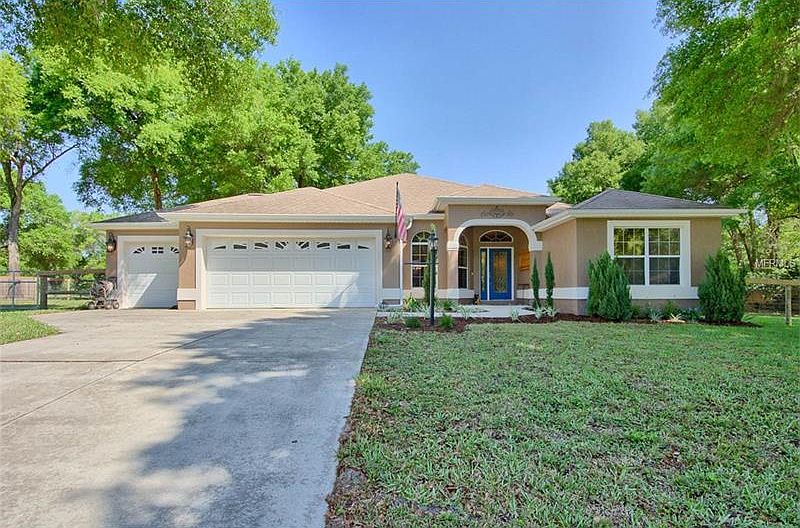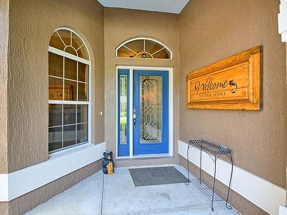 Lovely Concrete Block Stucco Home on over 1/2 Acre! Located just minutes to Everything! Leaded glass front door leads to a tiled foyer & living area. The open concept floor plan is accented by decorative cutouts and niches, volume ceilings, designer paint tones & beautiful neutral tile. The upgraded chef's kitchen features stainless appliances, Corian countertops, tile backsplash, new cabinetry, a glass top range, breakfast bar & eat in kitchen area. The dining & living areas overlook the screened lanai through quad glass sliders. The master bedroom is oversized with His/Her walk-in closets, and also features a sliding glass door to the screened lanai. The master bathroom boasts His/Her vanities with Corian countertops, a sit down vanity, tiled walk in shower & separate water closet. The extra bedrooms are spacious and both include closets. A large screened lanai overlooks the FULLY FENCED back yard - plenty of room for a pool or whatever you desire! Complete with a storage shed in rear! Convenient to all shopping, restaurants & The Villages. This will not last long! Call for your private showing today!