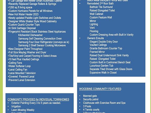 PRISTINE.....Carefree living awaits in this Gated amenity rich Woodbine Townhouse. 2/2 with 1 car attached garage.Impeccably cared for & beautifully updated NEW ROOF & Designer finishes with Shaker Cabinets, Quartz Counters, Remodeled Bathrooms, Graphite Stainless Appliances, Fresh Paint, Lake Views & Landscaping Designed for Privacy. A floor plan with 2 Primary Suites & Just minutes to the Beach, Restaurants, Retail, Professional Offices, the airport & the VA Hospital. Yard maintenance is included. A cozy neighborhood where the outdoors is appreciated. Pets and residents enjoy the beauty of the manicured surroundings & serene walks while still convenient to everything and still an easy commute. More features listed in Docs Tab. PRICED TO SELL NOW! Owner is related to Listing Realt