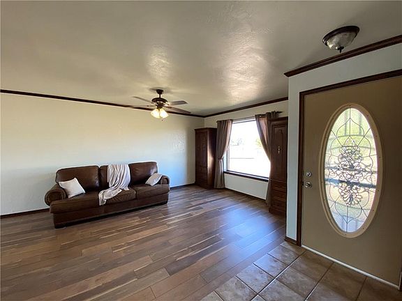 The perfect home on the edge of town with a country feel! 1 acre lot (MOL) Remodeled with beautiful laminate flooring throughout! Eating bar and tile floors in kitchen. Tons of cabinets for storage with double pantries! CH&A has been replaced. Windows have been replaced with double pane tilt-in for easy cleaning. Open floor plan! Watch beautiful Oklahoma Sunsets from the large wood deck out back!
