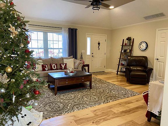 Charm and exquisite detail in this 3 BR 2 ba. home with several custom upgrades. Engineered wood floors, vaulted ceiling, wainscoting and crown molding. Stainless steel appliances and remodeled kitchen with tile floors and custom tile backsplash. Bathrooms recently remodeled with tile floors. New carpet throughout in 2020. Expertly landscaped with a rock fountain near the patio. A lush yard and beautiful pagoda with sun shade and fire pit will be awesome for those backyard gatherings. Complete with a storage building w/loft and electric.