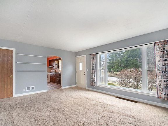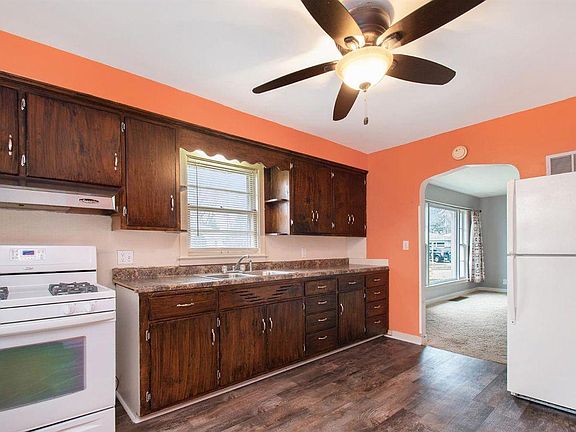 GREAT CORNER LOT! Located in a quiet neighborhood, this 3 bedroom is a fantastic starter home or perfect for one looking to downsize. Living room has a delightful large picture window letting in lots of natural lighting. BONUS there are hardwood floors under that carpeting! Three bedrooms and an eat in kitchen, with new flooring, round out the main floor. So much potential in the basement currently with large laundry room, a rec room/play room and an office or craft room. Screened in porch entry, attached garage, fenced in backyard and all under 100k make this house a slam dunk! Add a few finishing touches and call this HOME!