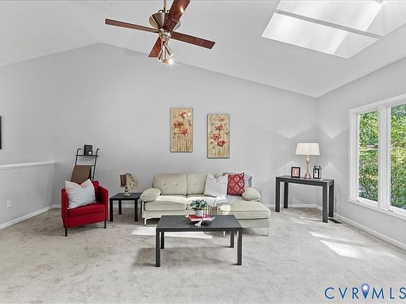 Welcome to Cedar Chase in Henrico’s sought-after West End! This contemporary townhome offers a bright, open living space with a vaulted great room featuring skylights, a dining area, and a kitchen that flows seamlessly for easy entertaining. With 3 bedrooms and 2.5 baths, this home is filled with natural light from casement windows and additional skylights. The kitchen showcases rich wood cabinetry, while the covered rear deck provides the perfect spot to relax. The primary suite includes a walk-in closet and a private bath with a shower.