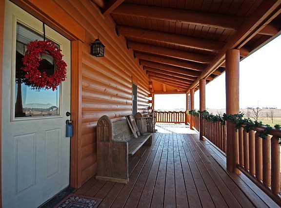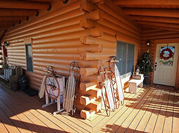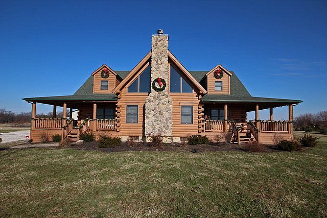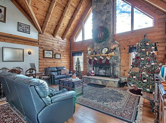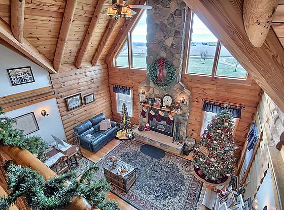 Log Home Getaway Your own Private Retreat!! Modern Rustic Living at its best but with all the Perks of a Newer Home. The Great Room has a Soaring Cathedral Design with a Loft Overlook and Huge Transom Windows. The Kitchen has and Island and Eating Space with Custom Cabinets and all the Modern Conveniences. The Master Suite features a Deluxe Garden Bath with Whirlpool Tub. There is also a private exterior door off of the master that leads to one of (2) Wrap Around Porches. There are (2) finished rooms in the basement used as Bedrooms plus a Full Bath. This home functions as a 6 Bedroom Home. The Pole Barn is large enough to hold 4 cars and there is plenty of parking space on the concrete pad. If you are looking for Land, Privacy and a Luxury Log Home feel then you have found it here!