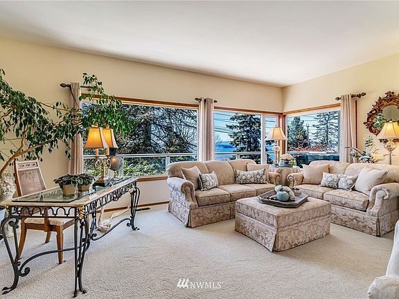 Spectacular custom built home with expansive views of Puget Sound & Olympic Mountains. The spacious light filled floorplan has 3 plus bedrooms (with two master suites on main & 2nd floor), 5 baths, and the open layout is designed to capture views from almost every room. Interior features include: dramatic 2-story foyer, open staircase, tall ceilings with large windows, grand sized bedrooms with oversized walk-in closets, a huge partially finished basement, 4 decks (with great entertainment sized patio & hot tub), and a large 2 car garage. In pristine condition both in and out make this a unique opportunity!