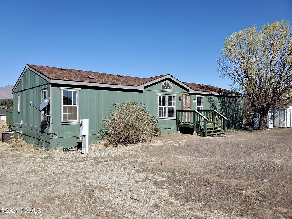 This 4 bedroom, 2 bathroom manufactured home has been recently refurbished! It has all new flooring, new interior paint, doors, closets and more. It is clean as a whistle and ready for its new owner. This home has 2 big living areas, a wood stove fireplace, a very nice kitchen and lots of space. Out back, there is a recently rebuilt back deck and stunning views of the San Francisco Peaks. But bring your horses and toys, because there is a large Run - In shed style stable for at least 3 horses. All it needs is a few stalls added. There is temporary fencing in place, but you can add what you want on this huge 2 1/4 acre parcel. Located just minutes from Flagstaff, this Doney Park home may not last long!