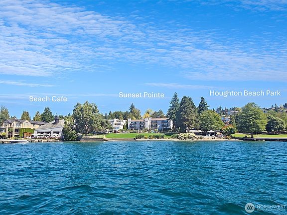 This is what you call a "lifestyle" home! Every day here is a vacation! Sunset Pointe is a quiet, 20-unit community next to Houghton Beach Park on Lake WA. Paddleboard at sunrise or take your morning walk along the lake. Meet friends for brunch at Beach Café next door. Easy stroll to pubs & fine dining at Carillon Point. This incredible, top floor, west facing condo has lake, mountain & Seattle skyline views. Watch 4th of July fireworks & glowing sunsets from your private balcony. Beautifully refreshed w/ designer Farrow & Ball paint & new Karastan carpet. 2 prking spots + storage unit. Commuter's dream location! 2 Mins to 520 fwy. 3 Blocks to KCC trail which links to Google & Lakeview Elementary. Experience the Kirkland beach lifestyle!