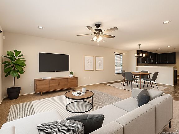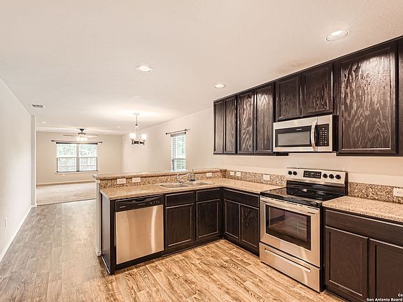 Enjoy private deck in backyard that backs to a wooded greenbelt! For addll privacy there's a community owned lot on the right side! Lots of space to relax and enjoy. Immaculate 3 bdrm plus study, 2 bath home with open floorplan. Study up front could be used as a formal dining room. Open kitchen. Lots of storage space - check out the extra closet by the back - other plans don't have this extra space! Spacious primary bedroom with en suite bath and huge walk in closet. Upgraded HVAC system to keep you cool! Neighborhood amenities within walking distance include pool, park and playground. EZ commute via Loop 410 to Toyota, Brooks City Base, Texas A&M, shopping, and the San Antonio Missions yet tucked quietly off of the main roads - Come See!