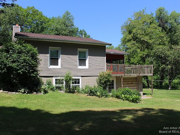 RANCH Home Abuts STATE LAND & over 1000 Acres owned by Michigan Audubon Society ( Haehnle Sanctuary )! This Cozy 2 bedroom 1 bath ranch has oak hardwood floors, a wood burning fireplace, Screened in porch! Vinyl replacement windows and a new furnace! Walk out basement, Decks! Comes with all the appliances! Large Shed! This 2 acre property is all high ground & heavily wooded in the rear! Wild life galore! Near Portage Lake which has both State & County Parks. Waterloo Recreation area just a few miles away! Fantastic Opportunity to own your own little spot of Paradise! Plenty of room to put up an outbuilding or expand the home if more living space is needed!
