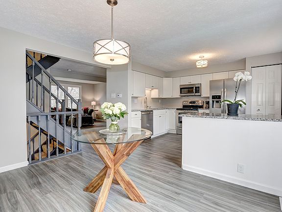 Pristine, renovated end unit TH with southern exposure. Fabulous open kitchen redo features new shaker cabinets, granite counters, stainless appliances & storage island. Completely redone baths, new carpet, energy efficient low-e glass tilt windows & Congoleum composite water proof flooring throughout first floor. 3BR up including huge master suite with dressing area, separate sink & walk-in closet! Completely renovated luxury ceramic bath. PLUS, finished basement features huge rec room with fireplace, stylish full bath with ceramic & stone shower, storage closet & laundry/utility room. Landscaped & fenced rear yard with spacious patio.