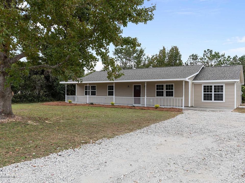 Adorable, updated low country ranch in the heart of Hampstead. Single story, low maintenance, non-HOA living at its finest. This move-in ready home offers 3 bedrooms, 2 baths, with a fireplace and a rocking chair front porch. Don't forget about the BONUS PARCEL conveying with this property! Right off of Sloop Point Loop, less than a mile from the public boat ramp and Kiwanis park. Located within the coveted Topsail school district!