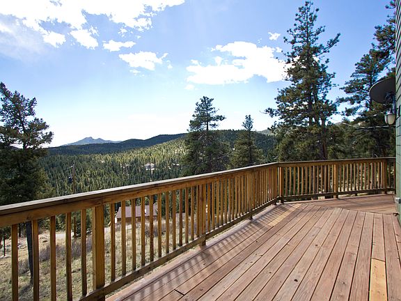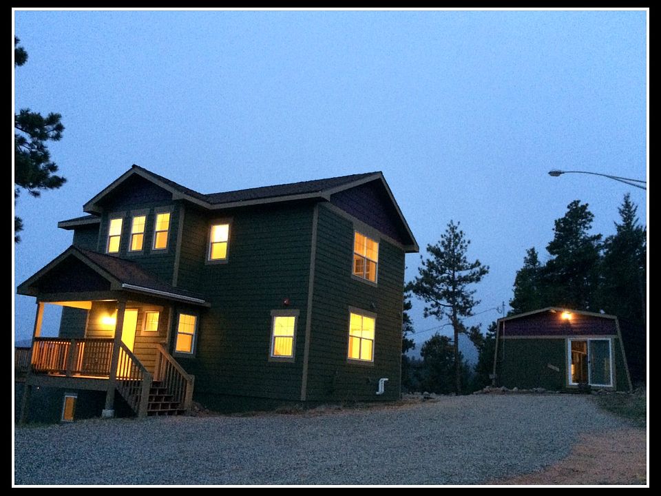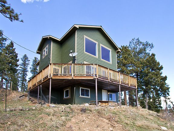 Custom built craftsman home with amazing panoramic mountain views. Inside you will find artisan stonework surrounding the fireplace, hardwood floors and gourmet island kitchen with granite counters and stainless steel appliances. Dining area has access to the wrap around trex deck. Large east facing windows provide both mtn. views and ambient heat for main and upper levels. The upper level boasts a private master suite with master bath and loft area with great views. The walk out basement has two bedrooms and full bath along with a flex/entertainment area. Newly remodeled detached cabin sleeps 4 w/ granite, new appliances, new carpet& tile, new gas heating stove, and new bathroom and kitchen. Perfect for rental,VRBO, airbnb or mother-in-law. New finished oversized garage w/ overhead storage, new driveway with room for RV all on paved road maintained by HOA. Direct access to Flying J Open Space with walk/bike trails. 6 minutes to grocery and 35 minutes to Denver.