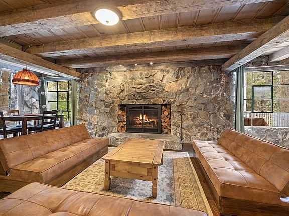 A one-of-a-kind mountain retreat, ideally situated on Donner Summit—just minutes from I-80 and easily accessed from Old Hwy 40. This remarkable 22+ acre estate includes a grand historic lodge (5,360SF), and a secondary residence. Perfect for entertaining, large gatherings, and hosting events in its stunning alpine surroundings. The expansive great room invites connection, while the dining hall—with a dramatic open-rock fireplace—seats up to 60 guests at banquet style tables. A commercial-grade kitchen features two large ranges, three ovens, three dishwashers, and a walk-in pantry. Three spacious dormitories provide sleeping space for up to 48 guests, with two large bathrooms offering multiple showers, sinks, and toilets. Crafted from solid granite, the Lodge blends beautifully into its pristine mountain setting. Offering a peaceful escape, set back from Old Hwy 40, with proximity to year round outdoor activities. Take advantage of the private sledding hill and direct access to snowshoeing and cross-country skiing. In summer and fall, enjoy hiking and mountain biking, with a renowned bike trail right next to the property. Shuttle to world-class ski resorts, Sugar Bowl, Soda Springs and Donner Ski Ranch. The estate borders Boreal Ski Area and the Auburn Ski Club—ski home in the winter or hike to one of the scenic lakes nearby in the summer. Ample parking accommodates all your guests and recreational toys. For added comfort, private quarters off the kitchen include two bedrooms, a bathroom, and a cozy living room with a wood-burning fireplace. The parcel also features a Secondary Residence, originally built for lodge staff. This “Staff House” is approximately 1,450 sq. ft. with three bedrooms, two baths, a living room with wood burning stove, and a large deck showcasing breathtaking views of Soda Springs Ski Hill, Castle Peak, and Lake Van Norden. Hoyfjellet Lodge (pronounced Hoy-fa-lay) is a legacy mountain destination, ready for its next chapter.