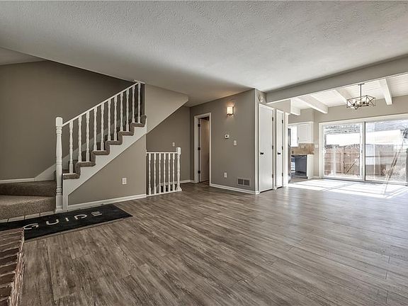 Townhouse located in desirable Edelweiss subdivision just a short walk to the neighborhood pool. Home has two large bedrooms with plenty of closet space, fenced patio, & a detached one car garage. New flooring throughout home. Freshly painted interior. Finished basement perfect for an office or 2nd living room. Subdivision has lovely landscaping and plenty of mature trees. HOA includes neighborhood pool, trash service, snow removal, upkeep of the grounds, gutter cleaning, exterior paint, clubhouse, community activities and walking path. Easy access to I-35 located minutes from the plaza and downtown.